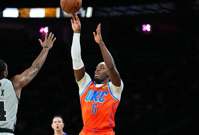本場比賽中,雷霆的先發側翼大閘呂岡茨-多爾特(Luguentz Dort)的表現堪稱災難。多爾特全場出場21分38秒,投籃7中1,三分線外6中1,僅得到了3分3籃板2助攻1蓋帽的數據,還有3次犯規,正負值為-10。多爾特在進攻端的效率一塌糊涂,他在外線投籃方面的穩定性簡直是糟糕透頂,完全沒有起到任何的作用。不僅如此,多爾特在防守端的表現也是很不理想的水平,同樣沒有辦法將自己在防守端的作用發揮出來。多爾特在攻防兩端的表現都令人失望至極,可以說是沒有任何的可取之處,他在場上時球隊的整體局面也是一塌糊涂的水平,這也能夠體現在他的正負值上。如果他的表現能夠更好一些,球隊說不定也能夠有機會取得勝利。